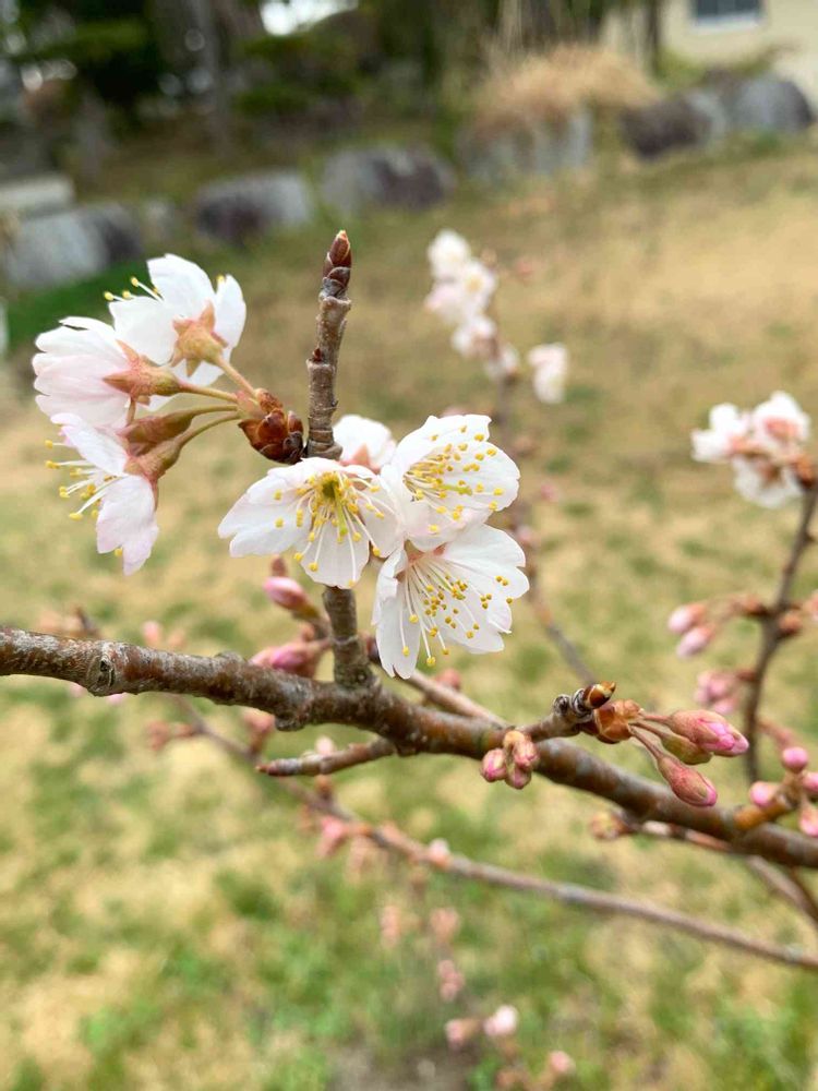さくらんぼの🍒花が咲き出しました🍒今年も実がなるかな😌桜はまだつぼみ、お花見もまだ、庭でわずかなさくらんぼの花を楽しみます🌸
