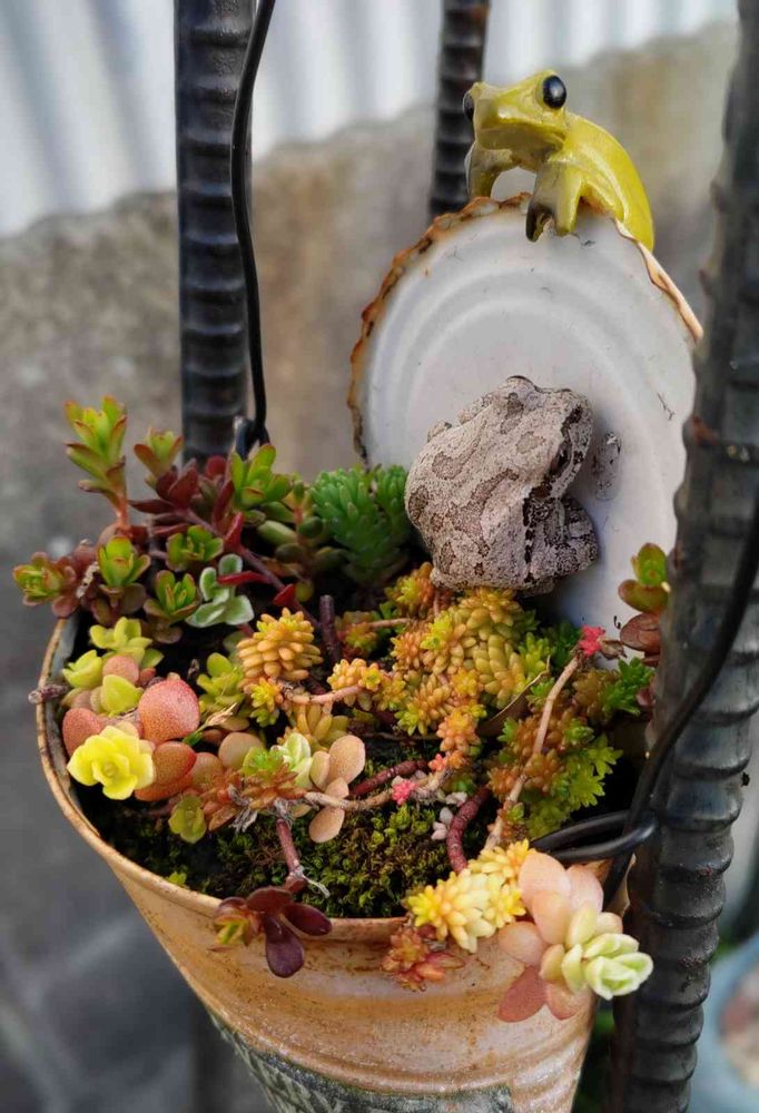 この寄せ植え、🐸のために仕立て直しも移動も出来ないの(*≧艸≦)ヒャハハ💦