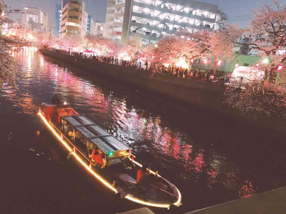 遊覧船で夜桜って優雅ですね。😊🌸🌸