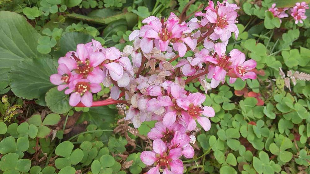 花壇にヒマラヤユキノシタが咲き始めていました。🌺