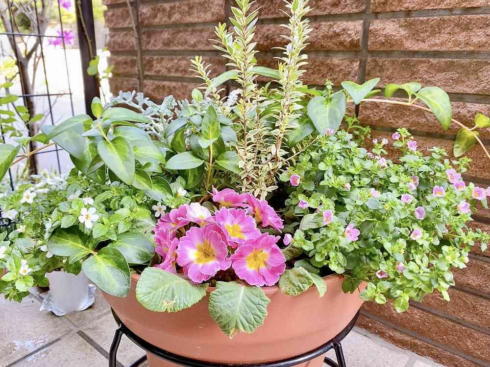 この寄せ植えはほぼグリーンで成り立ってますね😊春先にありがちなワッサワサの葉っぱに😅