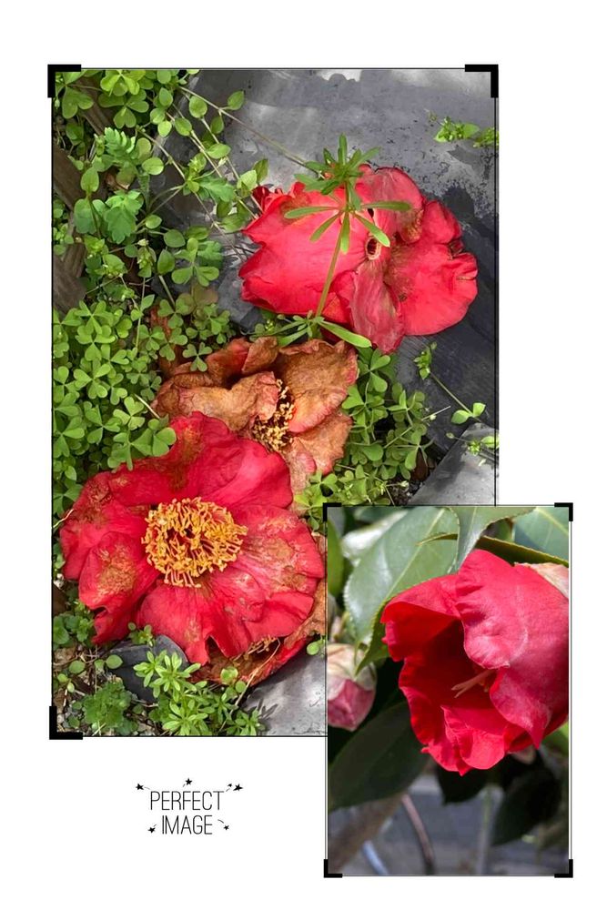 落ちた❤️赤い椿の花と蕾です。