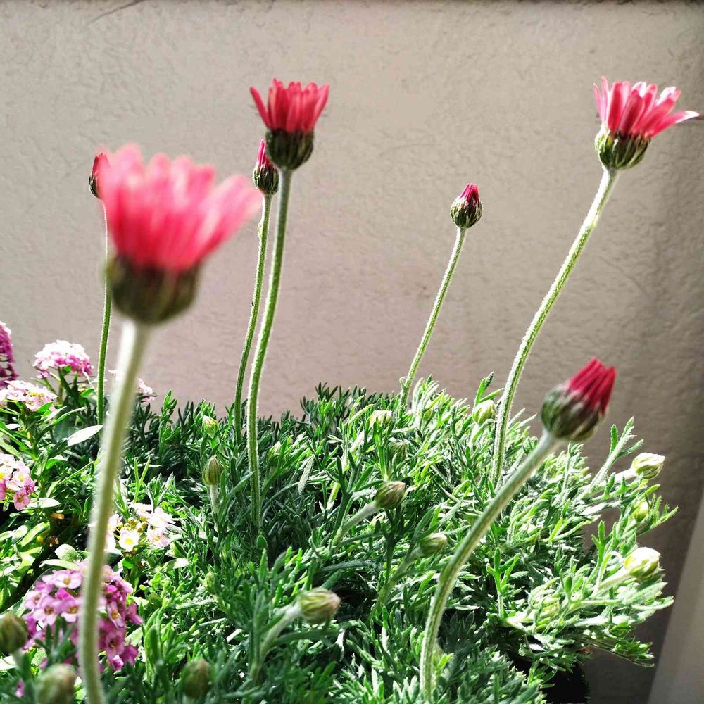 うちにもローダンセマムのアプリコットジャムとエルフピンクの寄せ植えあります(*^^*)うちももうすぐアプリコットジャムが咲きそうです🎶一緒ですね❣️