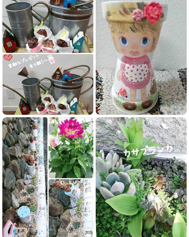 マルちゃんのかわいいリメ鉢にトワさんからのジョウーロにお家🏠たくさんの🎁