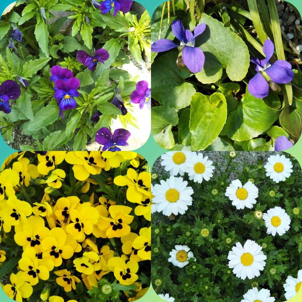 今日の花壇です、ビオラ、スミレ、ノースポール段々と花が増えてますね~😍🤗