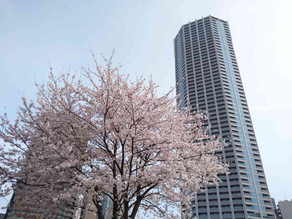 都会の中の満開の桜は、ひとときの安らぎを与えてくれます。