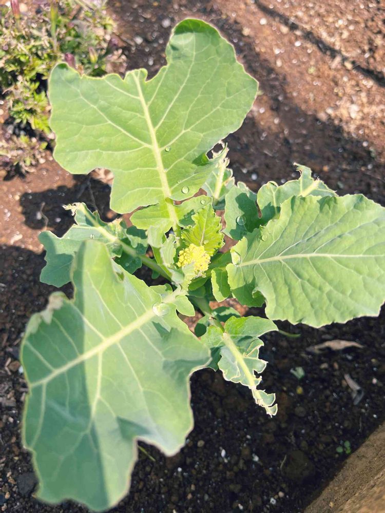 せっかく植えたロマネスコカリフラワーが、ヒヨドリの被害に遭って育つか心配だったけど、無事花蕾が出てきました✨