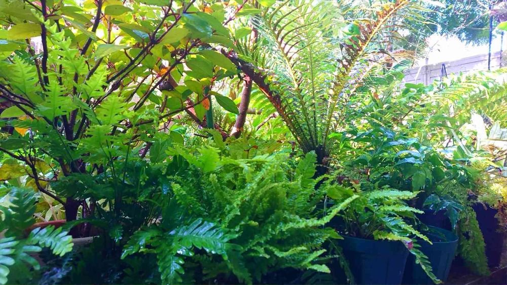 シダたち。写っているだけで11種類はあります。全部わかる人がいたらシダ博士です🎓️