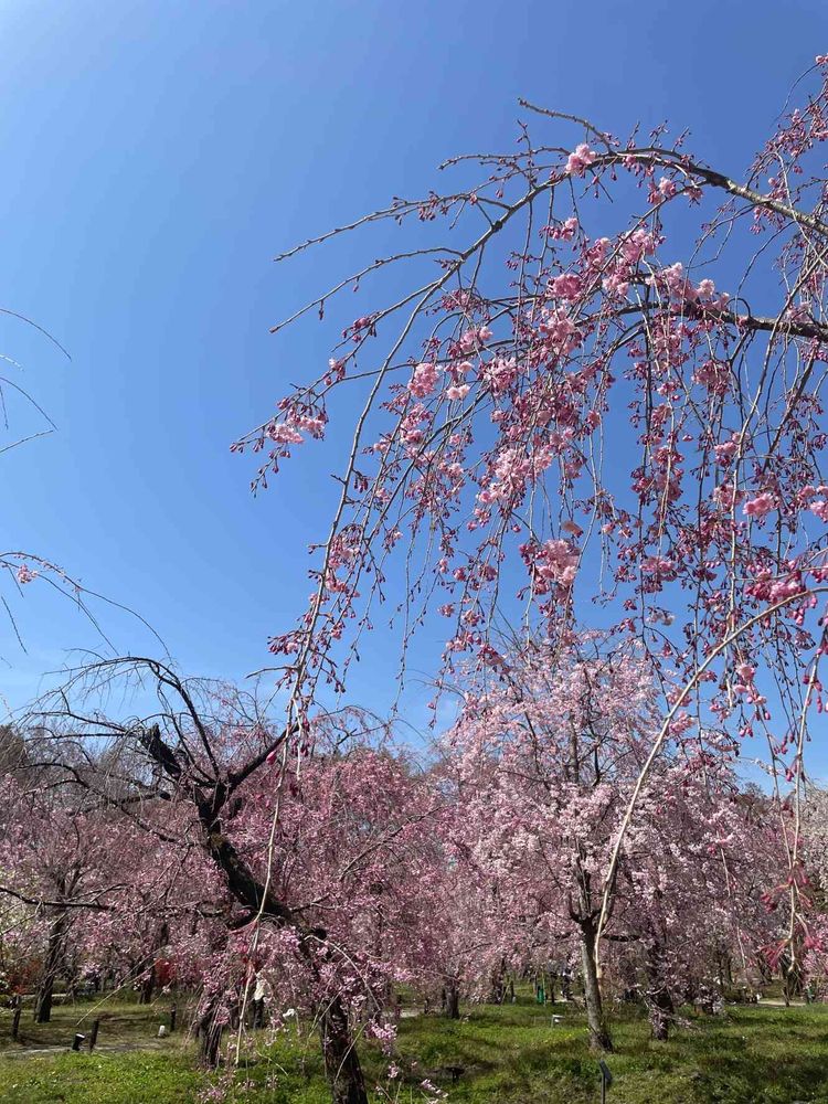 シダレサクラ🌸は色が少しずつ違うのですね🤔シダレサクラの中で種類が違うのかな🤔