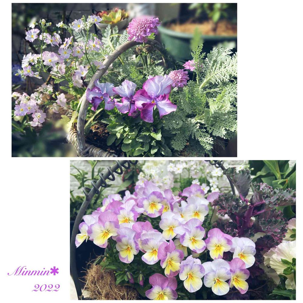こちらも葉牡丹と寄せてましたが、伸びてしまって上だけ✂️。パープルのアリッサムが少しだけ元気に塗ってきましたが、まだ