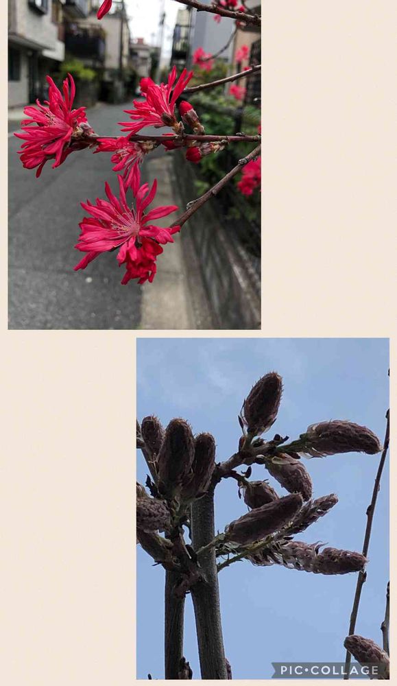 一昨日と同じ蕾‼️よーくよーくよーく見たら👀藤の花でしたー💡この赤いお花は何かしら🧐??