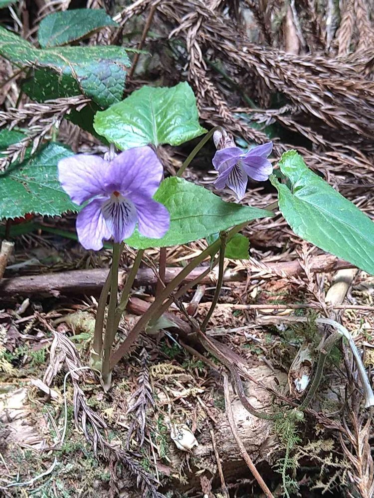 スミレサイシンは普通に葉が伸びた頃にはもう花は終わっています。花は落葉のあいだからひっそりと咲きます。