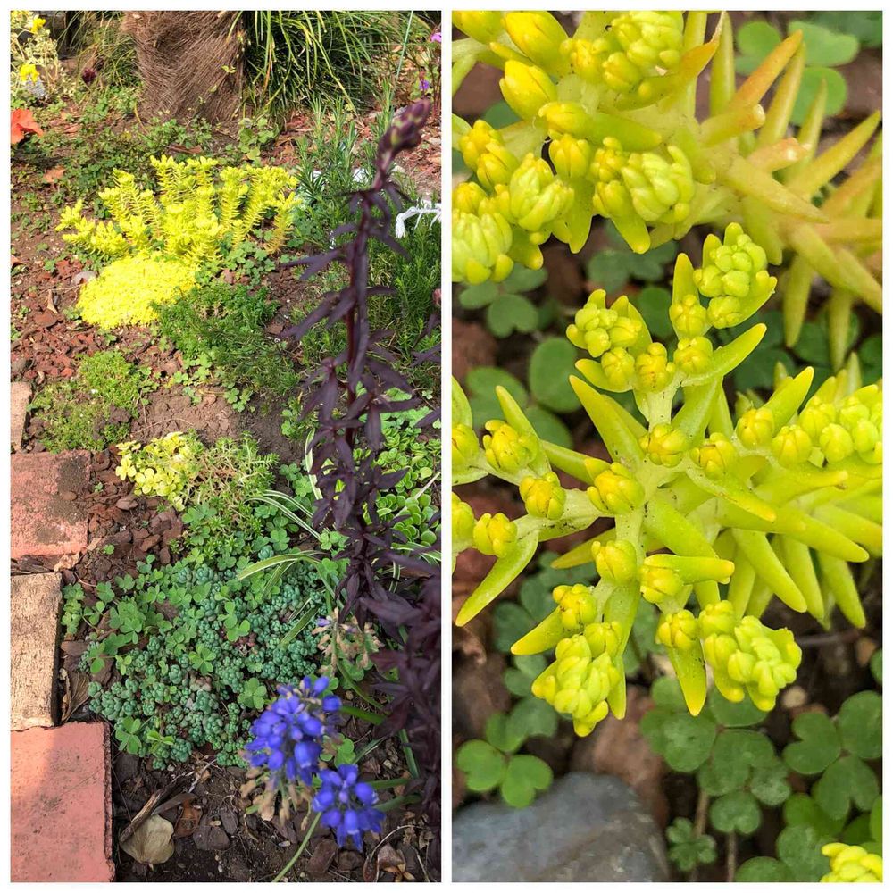 敷石レンガのの脇に、雑草防止で地植えで冬にも強いセダム系を育てていますが、その間からカタバミなどが猛烈に今生え始めて、セダムを抜かない様にそれらを採るのに注意を払っています(xдx;)もっと密集させて植えないと意味ないか?ゴールドビューティーには花が咲き始めました。手前の金魚草にも蕾が着きました。咲くのが楽しみ💕