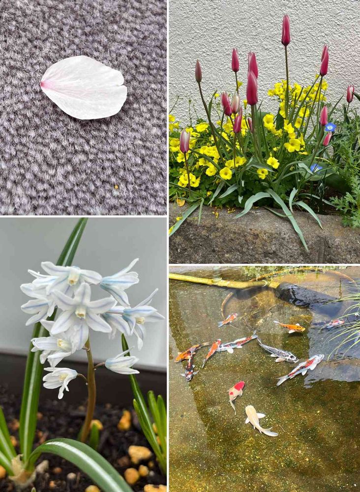 池のほとりの山吹草をじっとして必死に撮影していると誰もいないと勘違いした鯉達が近づいて来ました😏
