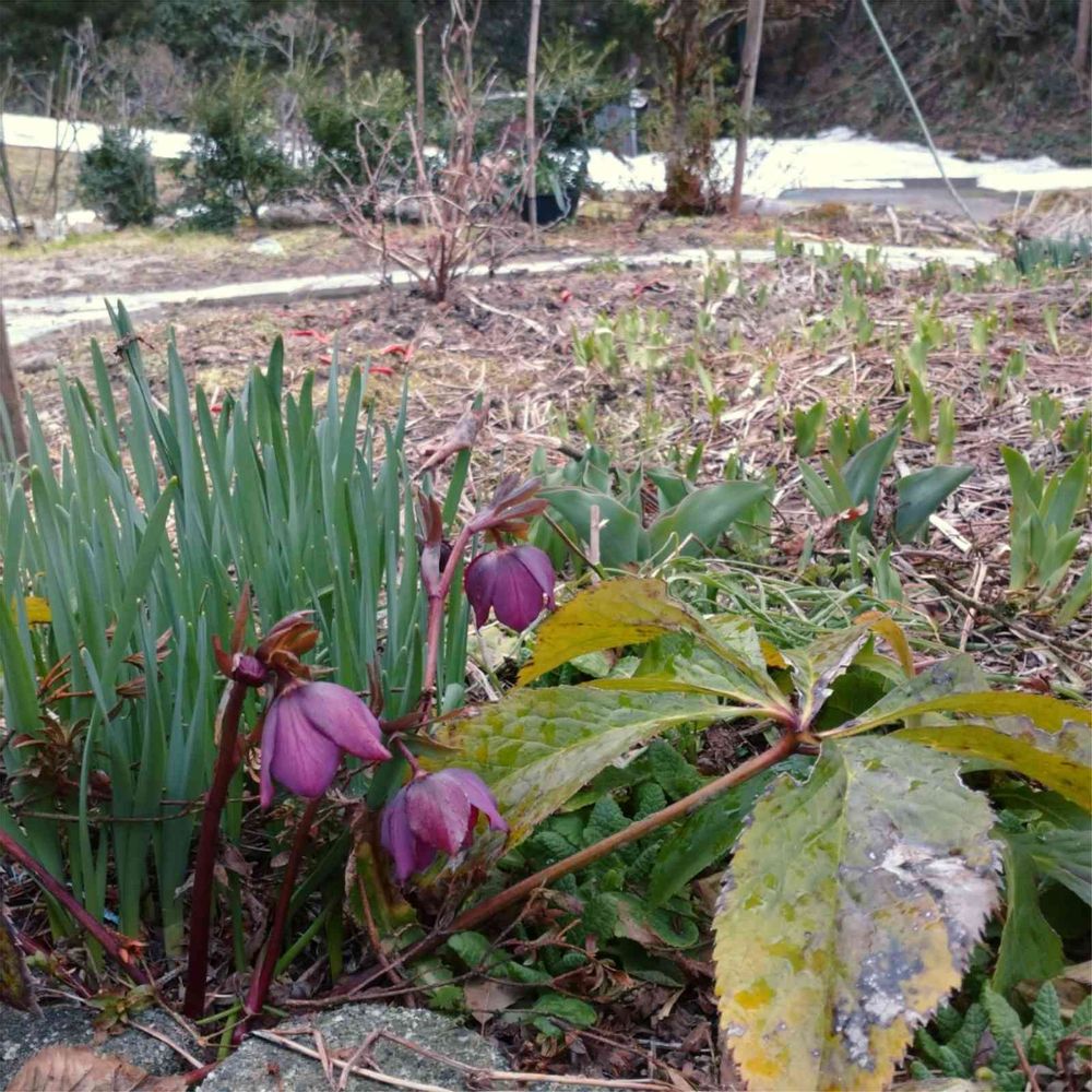 こぼれ種で増えたクリスマスローズ🌼