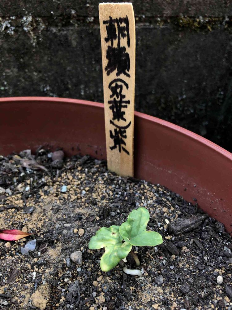 昨年一番最後に咲いた種類の朝顔のこぼれ種から、一番最初に発芽しました。