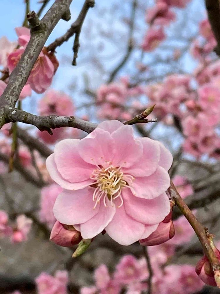 さんおはようございます😃こちらこそみていただいてありがとうございます🌸…八重咲きの梅のピンク色…春がきたっていう感じがします✨…桜の開花もうすぐです🥳…これからもよろしくお願いします🤗