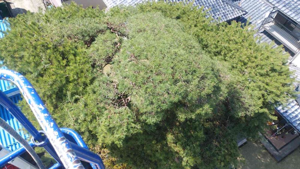19.5mの高所作業車からの眺めです。一面松の絨毯のようです。