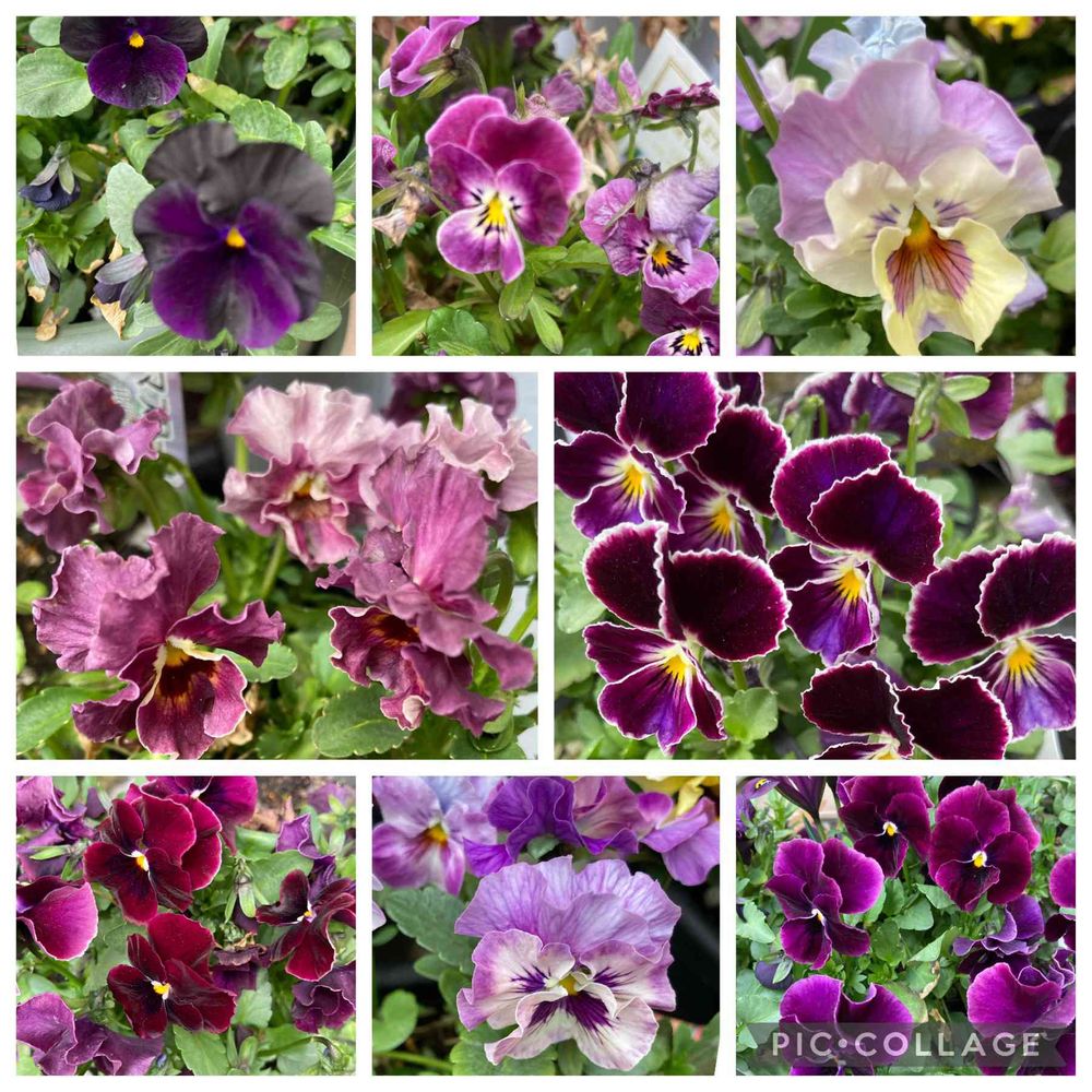 パンジー・ビオラがそれぞれの寄せ植えで元気に咲いてます