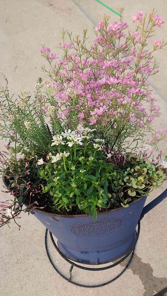 ねむの木探しに行ったはずなのに、ブリキ鉢から寄せ材から買っちゃって寄せ植え作ってしまった😂😂
