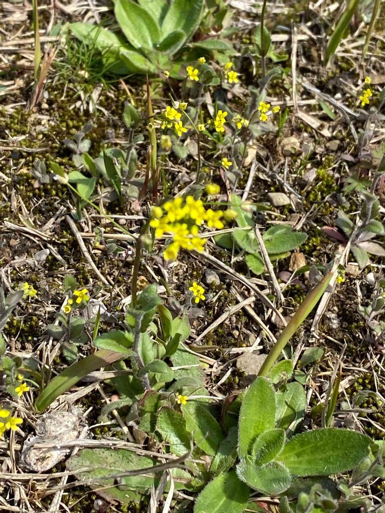 たぶんイヌナズナ?黄色いナズナがあるなんて、初めて知りました!田んぼわきに黄色くて小さい花が群生していてとても可愛い。
