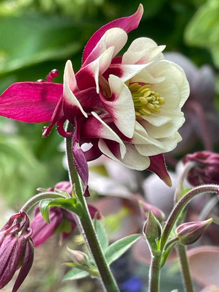 西洋オダマキ ウィンキーダブルレッドホワイトが咲き始めました♥️🤍