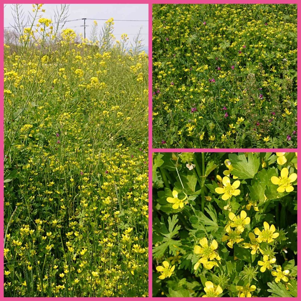 🌺田んぼ花園、菜の花ときつねのボタン。