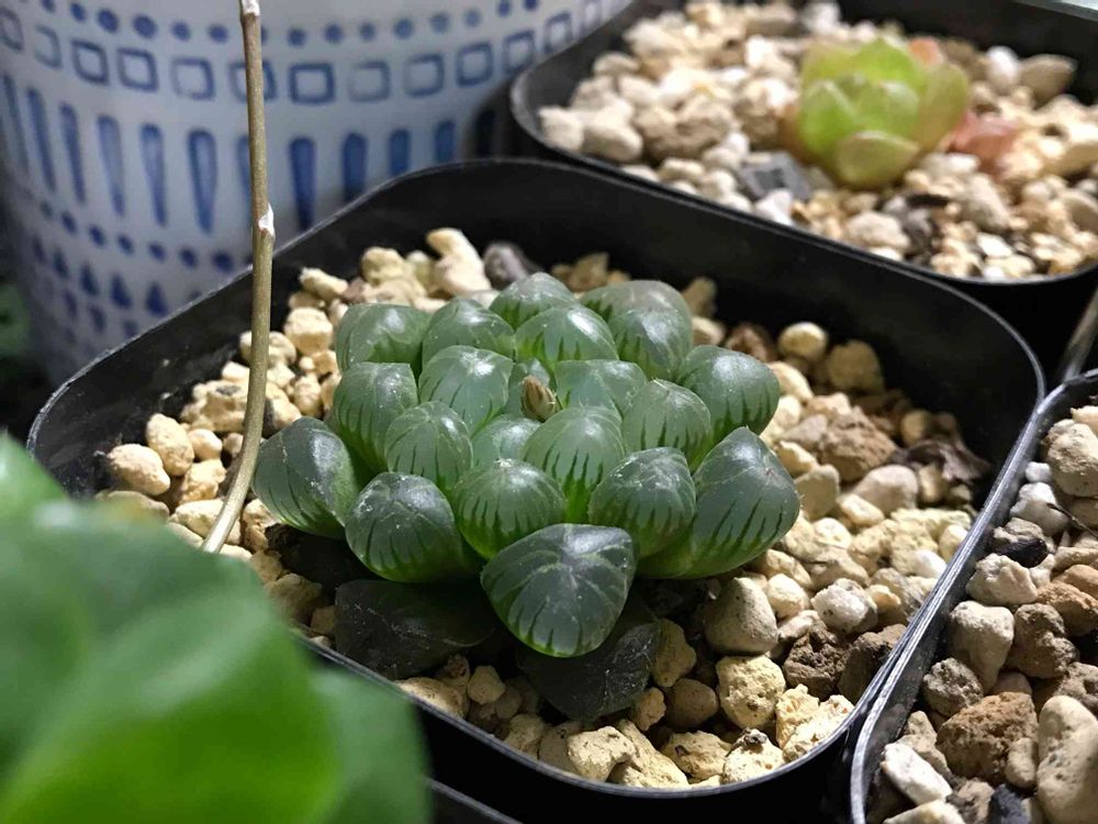 置き場を散々悩んだ結果、屋内の北側の窓辺で冬を過ごしたハオルチア達。明るさが丁度良かったようで冬場は綺麗な姿を保てました😊
