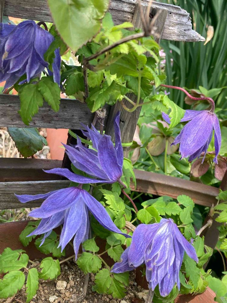 我が家の、一番古株のクレマチスオドリバさん(たぶん20年くらい)何回もの植え替えにも耐えて、今年もたくさんの芽が🌱🌱🌱