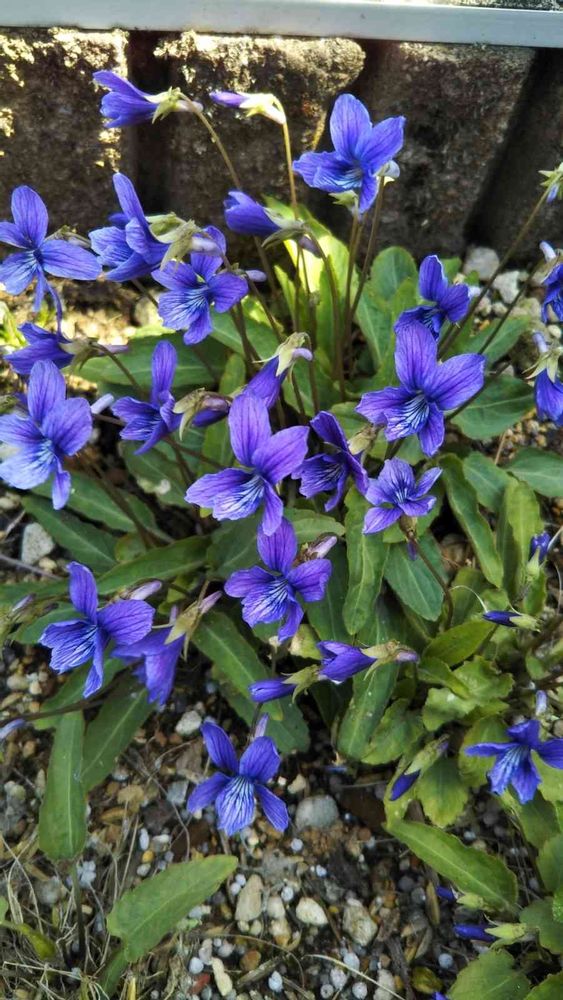 昼前の花壇〜すみれも咲き始めはいい色です💙💙💙💙🤗🎶