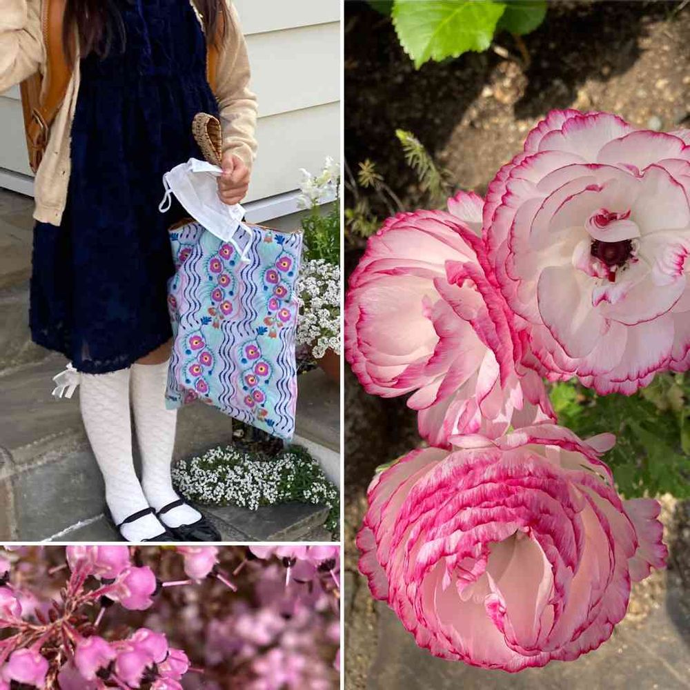 末っ子で、上の孫娘たちと一緒に登校できるのが嬉しくて〜 お花さんも喜んでるって、、、