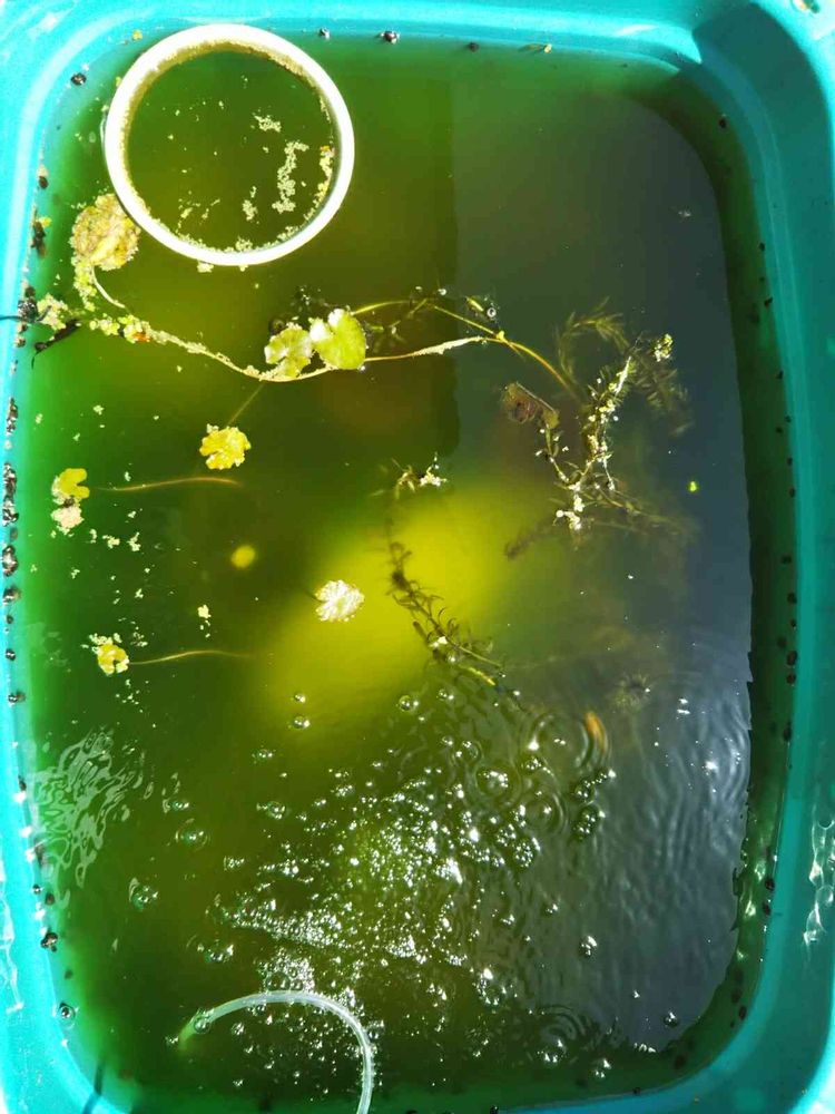 稚魚はいないのでグリーンウォーターを改善するため納豆のネバネバ汁を入れてみました。果たしてどうなるでしょう❓