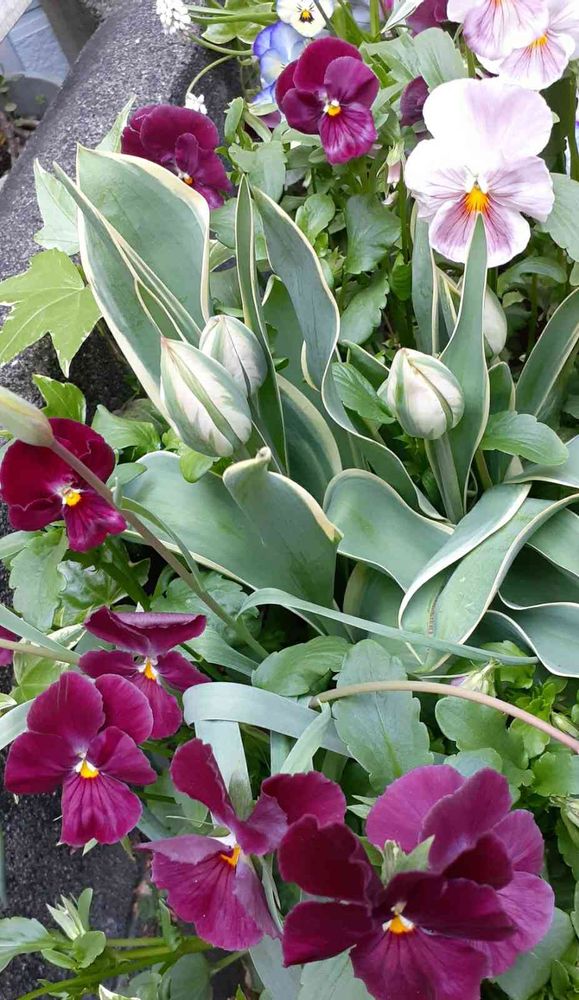 テラス,パンジー さくらこ&ももこ,葉も美しいチューリップ トップリップスの投稿画像