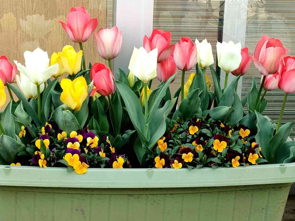 そして式の後、保育園へランドセル見せに行きました。沢山のチューリップが咲いて卒園生をお迎えしてくれました🤗