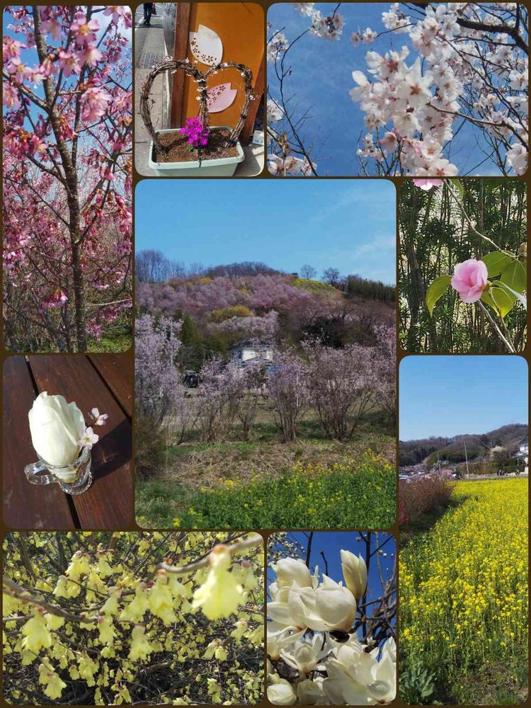🌸花見山公園の東海桜、オカメ桜、木蓮、日向水木、菜の花、ピンクの椿が満開でした=͟͟͞͞🌸=͟͟͞͞🌸=͟͟͞͞💛=͟͟͞͞*💚=͟͟͞͞🌸=͟͟͞💛