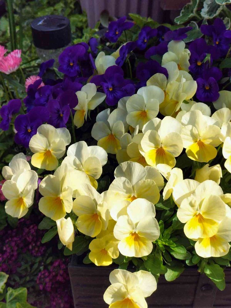 寄植えのプランターの中、切り戻ししたビオラ達が陣地争いの真っ最中!