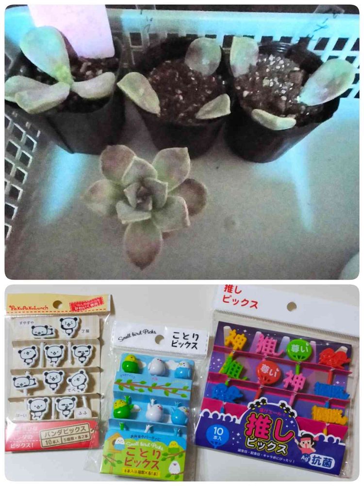 駅に出るなら、セリア観て帰りたいなぁ〜〜で、あっぐでたまさーん、まねっこさせてもらっちゃいましたーー推しのピック発見♥神やら尊いやら、自分のお気に入り多肉ちゃんの鉢に差すのが楽しみでーす