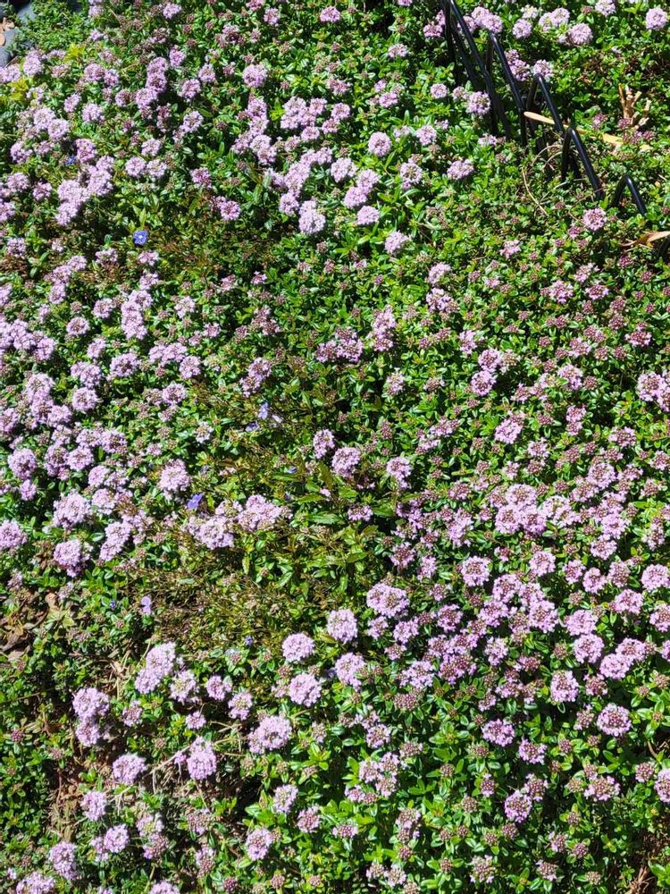 ベロニカのお花が終わって、次はタイムが咲いてきた。タイムロンギカリウス?タイムロンギカウリス?優秀なグランドカバー達🌿