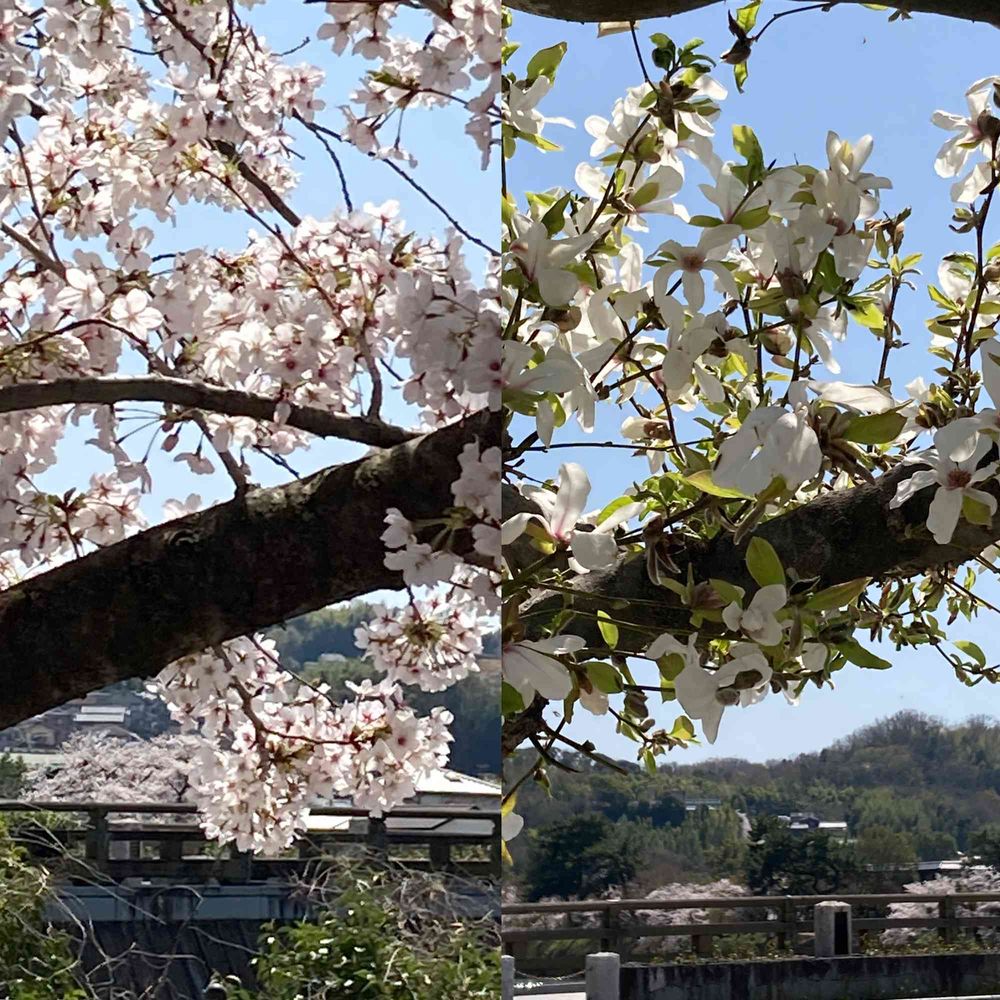 ソメイヨシノとコブシ? 宇治橋付近にて