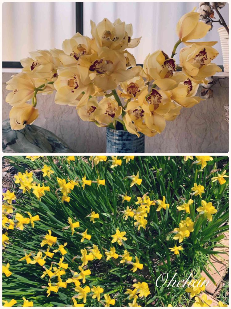 実家へ行ったら沢山の水仙が咲いてたり、玄関に兄が趣味で育てているシンビジウムがキレイに飾られてました✨
