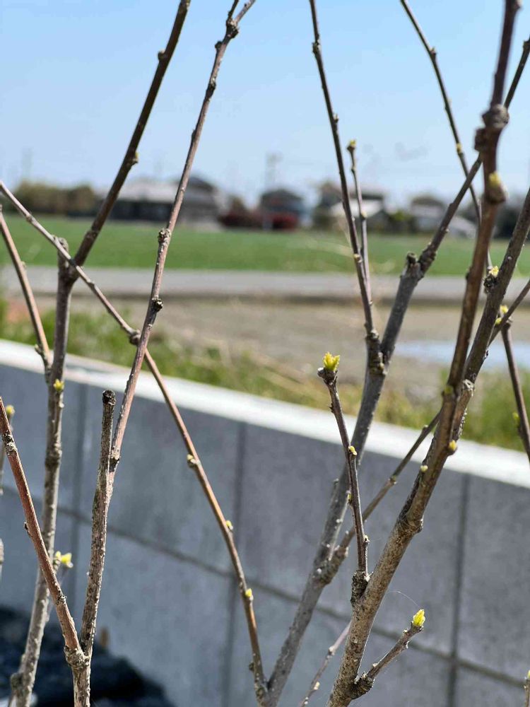 去年の10月に植えてから日に日に葉が落ちて枝だけになって枯れちゃったのか思いましたが、芽吹いたということは無事根付いたのかな😙