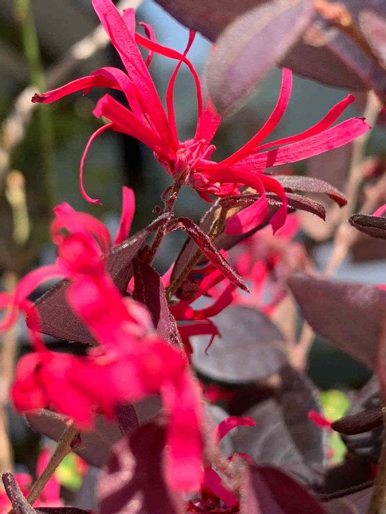 まんさくの花 我が家のまんさくの花は紅花ですが、丸山薫さんの詩の中に出てくる山中の花はたぶん黄色だと思います。花ともしない花だけど、、、という、詩の中の一節のような花です💘