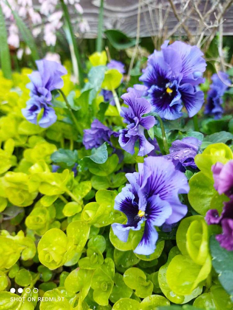 たっぷりのリキマシアオーレアの中から顔を出す、パンジーちゃん🌼