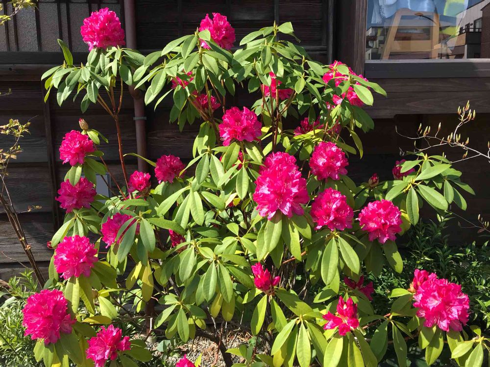 古いお宅を改装した和食処で、植込みにいろいろ生えてます。石楠花のお花が丁度見頃でした。🌸💞