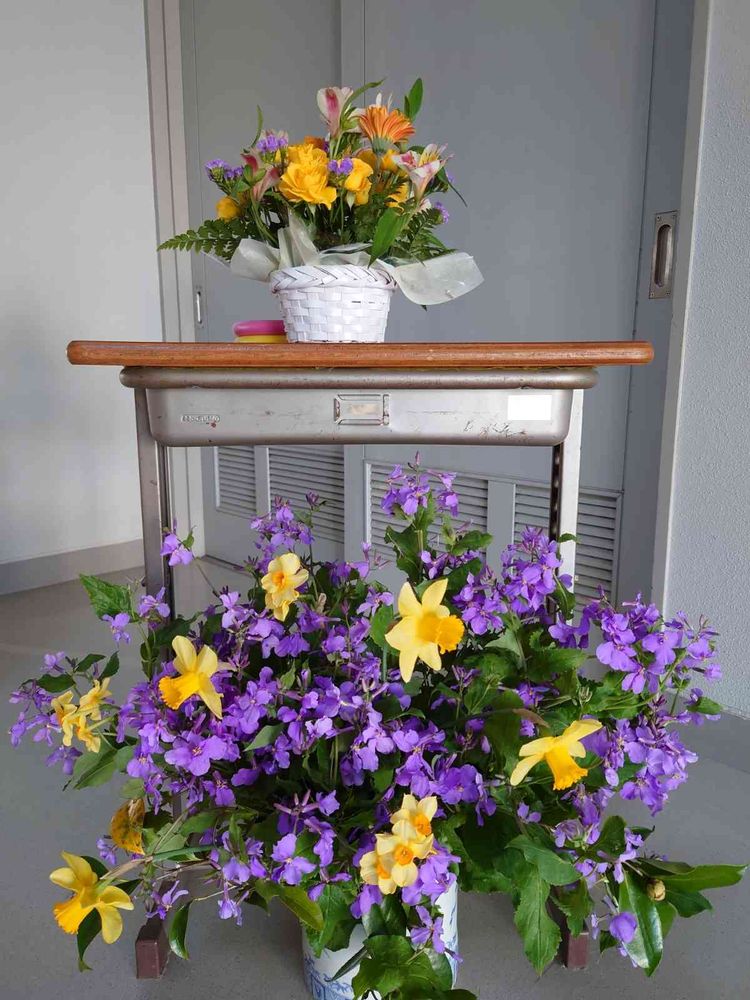 このお花🌼も入学式に生けられたお花🌼ですが、紫と黄色のコントラストが好きです🎵