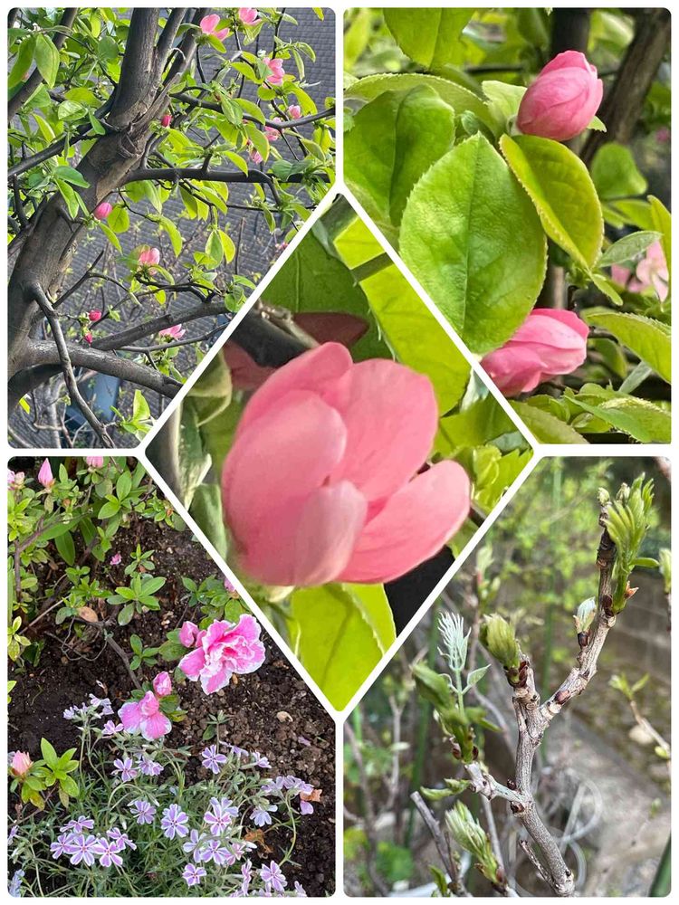 小さな庭,果林の花,アザレアと芝桜の投稿画像