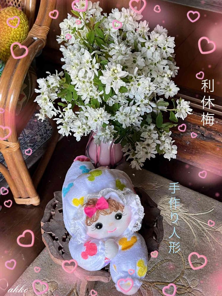 ひみつのアッコちゃんさんの玄関,利休梅(りきゅうばい),布製の手作り人形の投稿画像