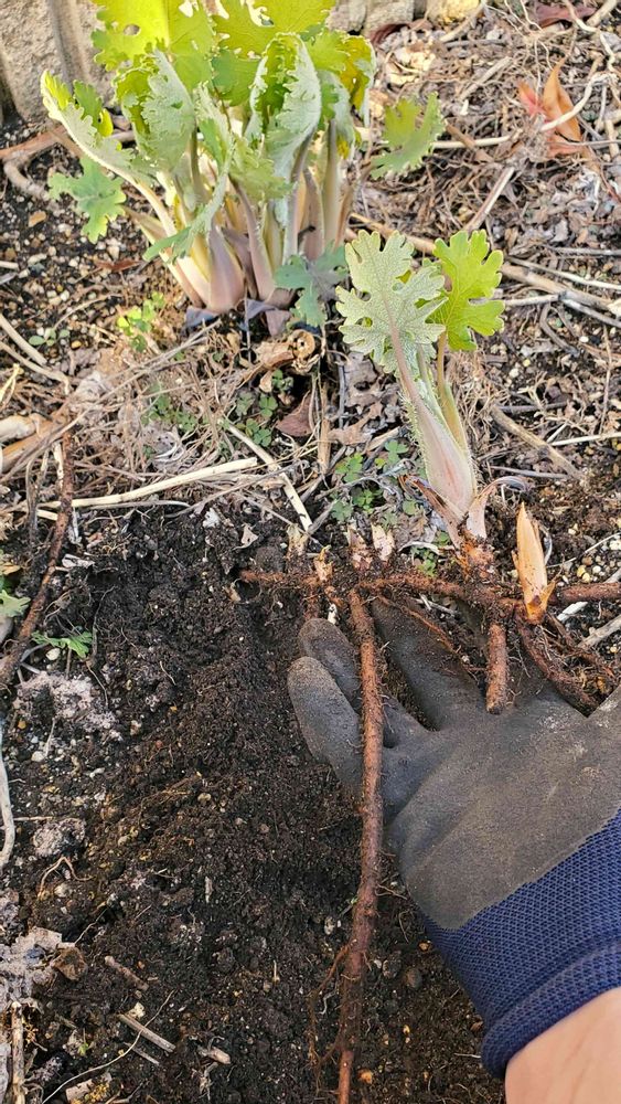 カーメン君ガーデンチャンネルで黒田邸を見たときに、雑草のタケニグサを庭にいれてるのを見た。へー!と思って去年、そこら辺の空き地に生えてたやつを庭に植えて今年で2年目。四方にタケニグサの芽が無数にでてきたので、こぼれ種かなと思って掘り上げたら、なんと全部地下茎!!これは取り返しのつかんことをしたかもしれん!! 掘っても掘っても無限に地下茎張り巡らされてる(笑)