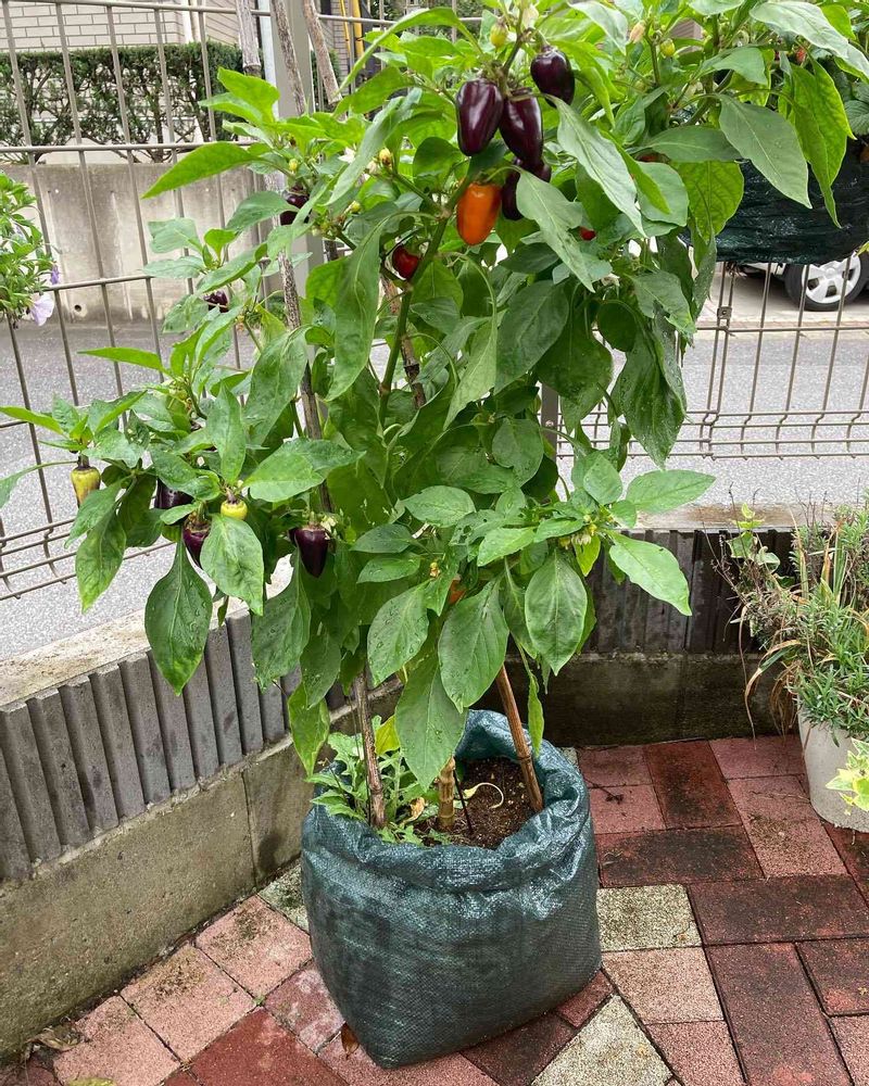 21年菜園バッグ栽培記録、たくさん実りましたがあまりカラフルにならず紫中心でした🧐💦