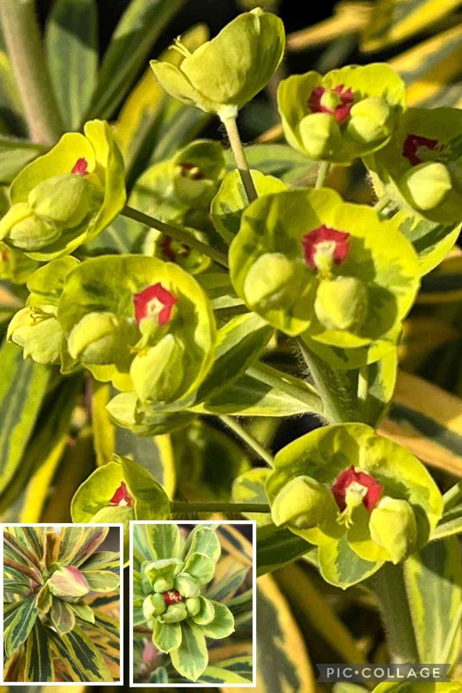 ユーフォルビア、赤いお花の下に両手にポンポンを持ってるみたいですね🥰可愛い